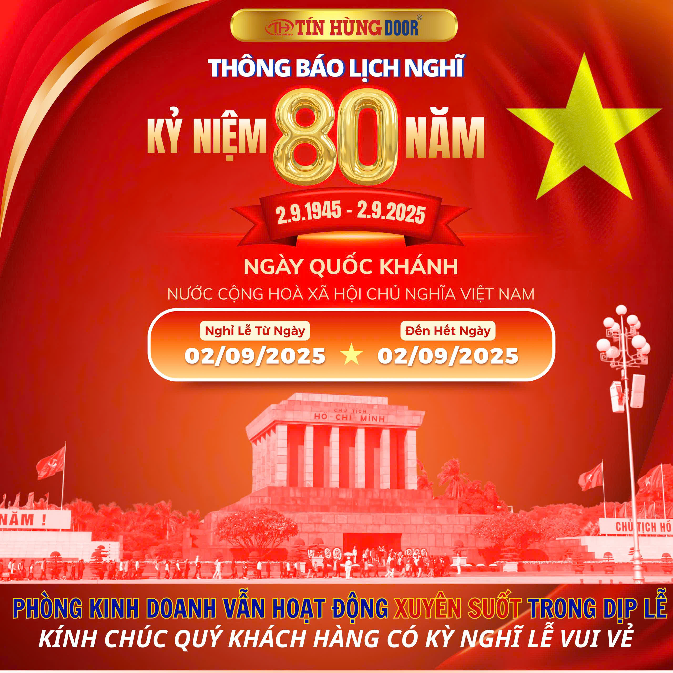 Nhân dịp lễ Quốc khánh 2/9, Tín Hùng Door xin trân trọng thông báo lịch nghỉ lễ như sau: